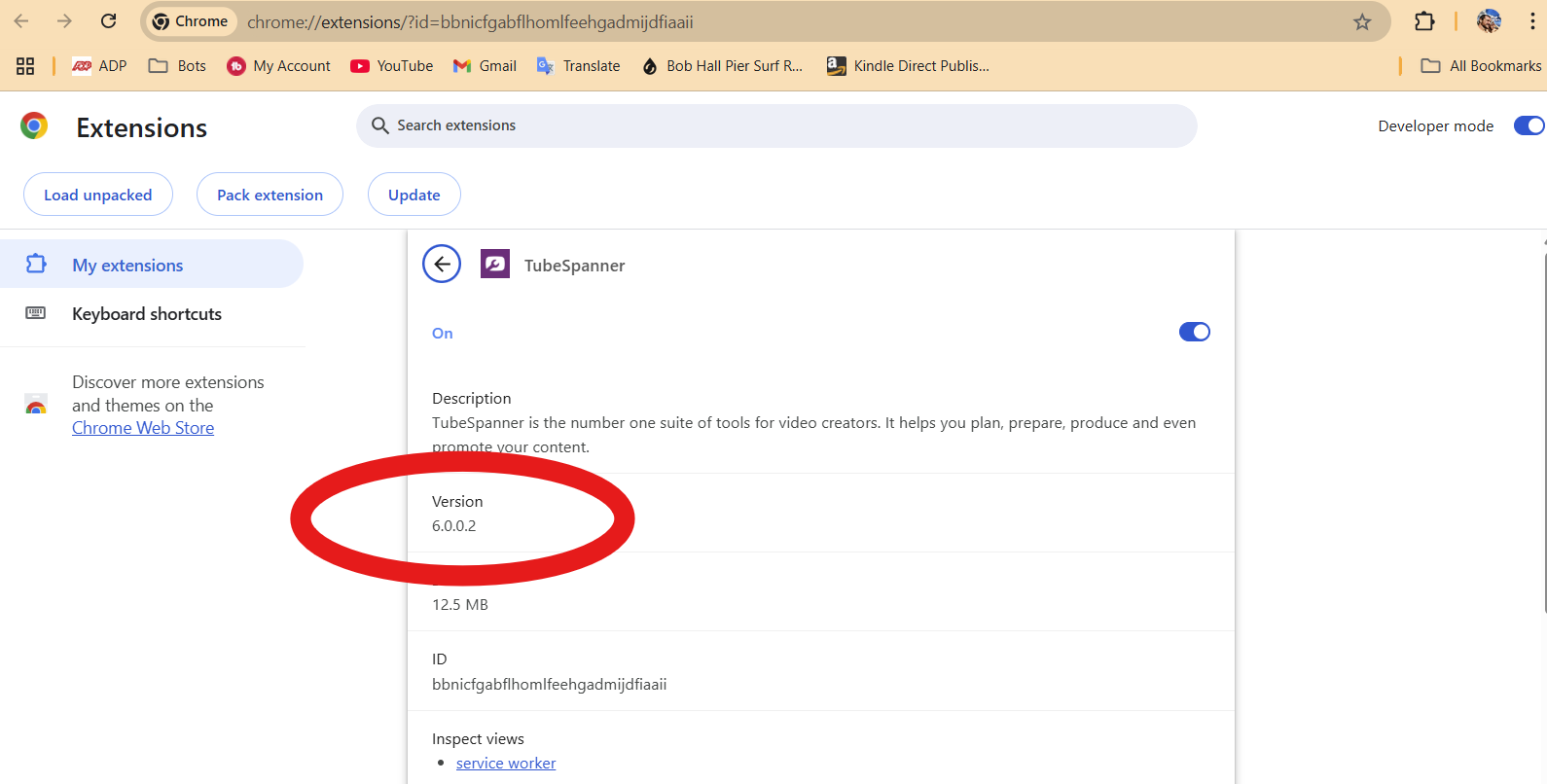 You can easily check to see what version number of TubeSpanner you are using by opening your Manage Extensions menu from the top-right corner of your Browsers menu bar: